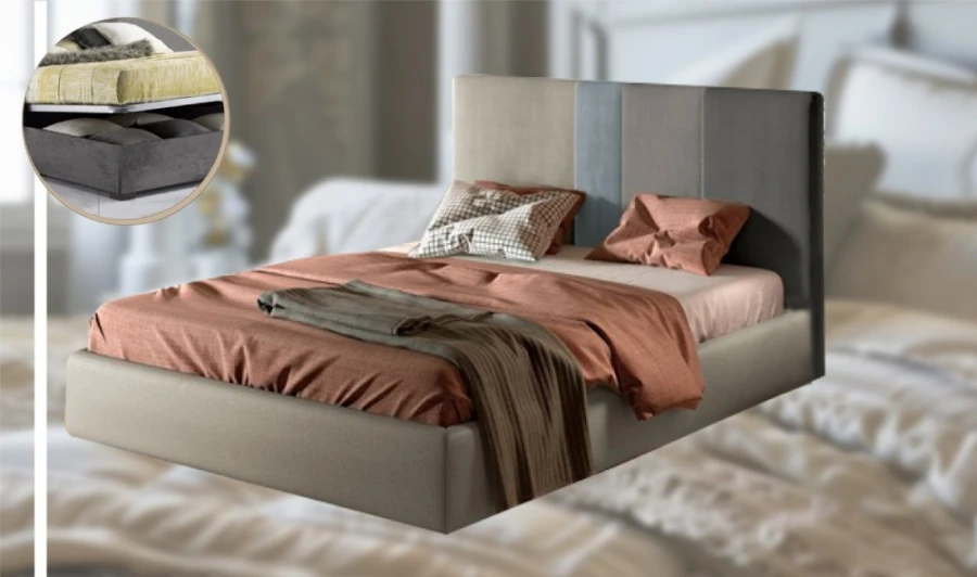 La tête de lit haute, matelassée et finie avec des coutures apparentes, offre un soutien confortable et un look classique. Le compartiment de rangement est facilement accessible en soulevant le sommier à lattes ranger dans le compartiment tout ce qui ne rentre pas dans l'armoire Disponible en différentes couleurs