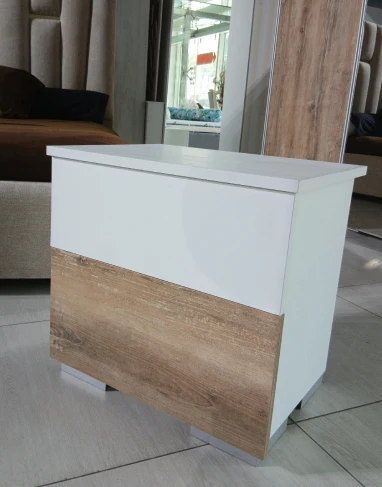 - Poignées : Plastica (Commode et tables de nuit), Aluminium (Poignée armoire)
