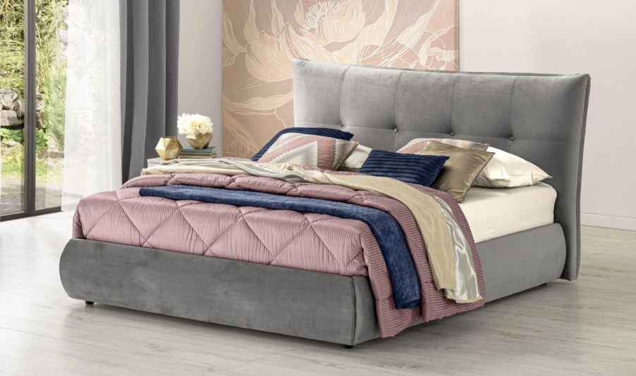 - Lit : En tissu avec tête de lit, cadre en MDF et revêtement anti-tache