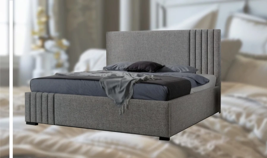 La tête de lit haute, matelassée et finie avec des coutures apparentes, offre un soutien confortable et un look classique.