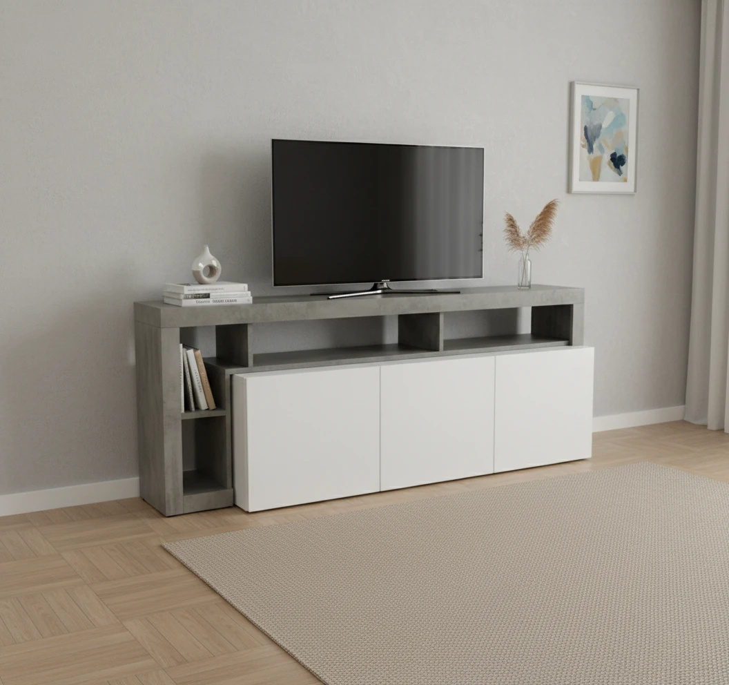 Réalisé avec un savoir-faire soigné en Algérie et en Italie, ce meuble TV est fabriqué à partir de panneaux laminés italiens OSSEDO de haute qualité, offrant une excellente résistance, une finition raffinée et une durabilité optimale.